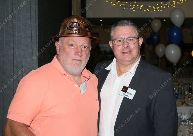 Wayne ‘Wacky” Walker wearing a specially designed “Miners Hat” and the days computer guru Michael Burke.