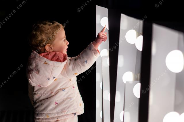 2yo Olivia from Berwick was fascinated with the glowing MND sign.
