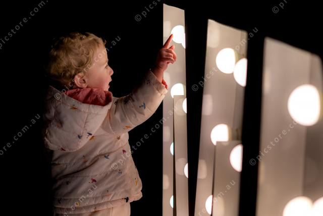 2yo Olivia from Berwick was fascinated with the glowing MND sign.