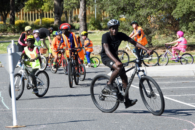 Arnold (helper) out front leads the cyclists around the course. 472248_07