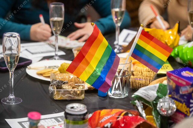 Rainbow Flags, Sparkling Wine and Bingo Cards made for a fantastic night. 483044_07