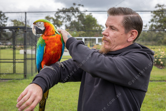 Ben Hamer from Pakenham with a Harlequin Macaw.