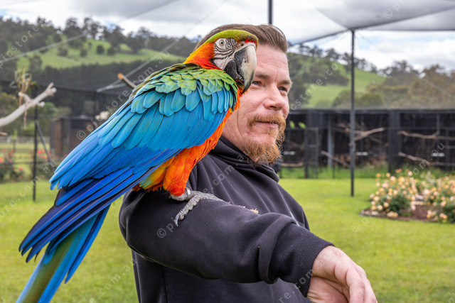 Ben Hamer from Pakenham with a Harlequin Macaw.