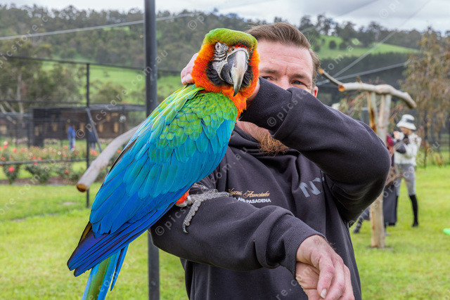 Ben Hamer from Pakenham with a Harlequin Macaw.