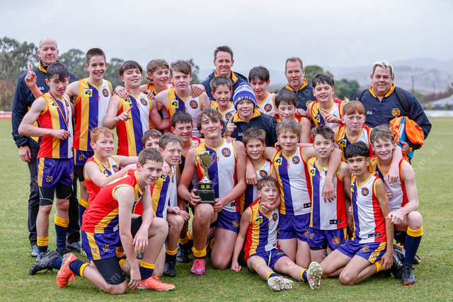 The BLG’s under 13s pose with the trophy after a fourth-quarter comeback over the Riverland.