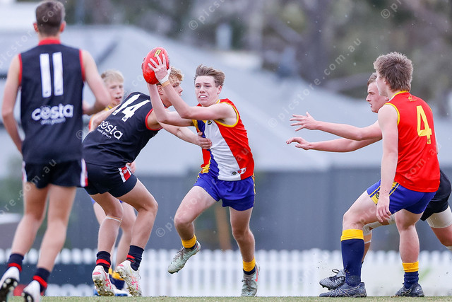Ryder Murray squeezes between a pair of incoming tacklers. (483322_03)