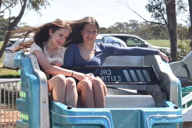 Amber Deleo and Delilah Ruiz enjoy the thrill of one of the rides. (506699)