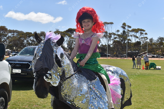 Zoey Standish from Woolsheds riding on MJ, both going under the sea for the Fancy Dress section. (506699)