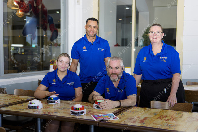 Jordan Burgess, Paul Neyland, Maely Felise (Verde Supervisor) and Natarsha Burgess (Restaurant Manager) prepare for the Bluey Trivia Quiz.