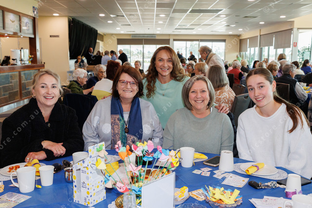 Mandy Smith, Sue Edwards, Megan Renzella, Carolyn Toet and Kelsi Toet at last year’s Biggest Morning Tea in Gawler. (Mark Willoughby: 476333_01)