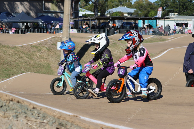 Rocky’s Alexzavier Groundwater, Beenleigh’s Edith Deasy and Rocky’s Sylvie Hogg neck and neck as they come to the first corner.