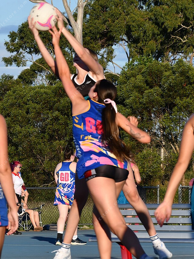 Kaylah Parker and Sophie Harbourne reach for the ball. (Elka Scherer: 479629)