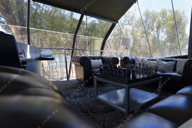 A luxury living area complete with a luxury chess set.