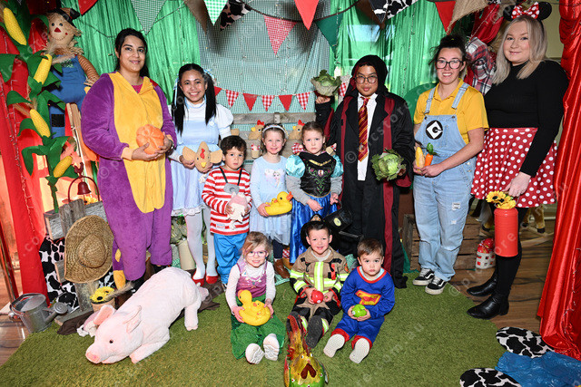 Complete Kids is celebrating book week. Pic of staff Amy Bhatnagar, Venus Schou, Ulysses Dela Pena, Nikki Oliver and Alana Anderson with kids Ella, Cooper, Jackson, Otis, Stevee and Summer. (Damjan Janevski). 493591_01