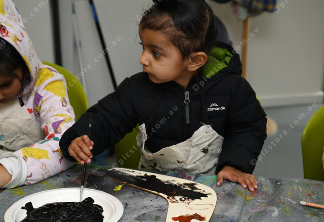 Boomerang painting workshop at Thomastown Library for school holidays. Pic of Jasraj (3). (Damjan Janevski). 489697_04