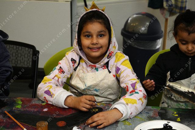 Boomerang painting workshop at Thomastown Library for school holidays. Pic of Sukhmani (8). (Damjan Janevski). 489697_05