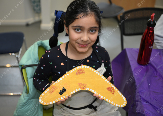Boomerang painting workshop at Thomastown Library for school holidays. Pic of Davina (9). (Damjan Janevski). 489697_09