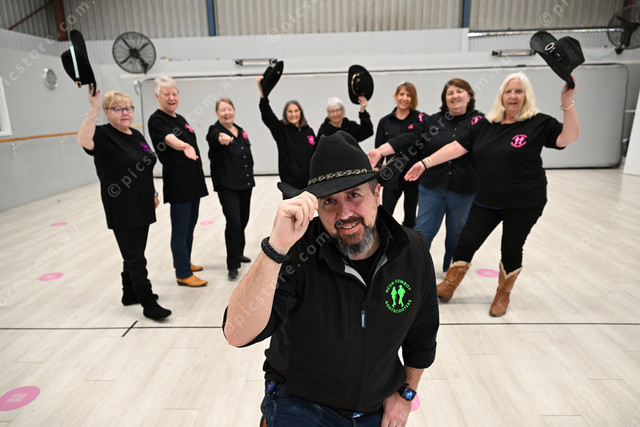 Neon Cowboy Boot Scooters. Pic of Edward Kays with some of members. (Damjan Janevski). 505720_06