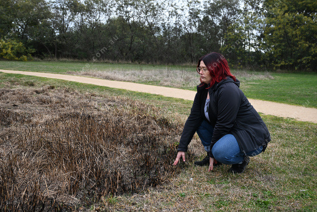 Pic of Nakeshia Mason from Friends of the Gisborne Botanic Gardens at the sections of the gardens have been burnt. (Damjan Janevski). 495394_03