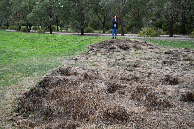 Pic of Nakeshia Mason from Friends of the Gisborne Botanic Gardens at the sections of the gardens have been burnt. (Damjan Janevski). 495394_04