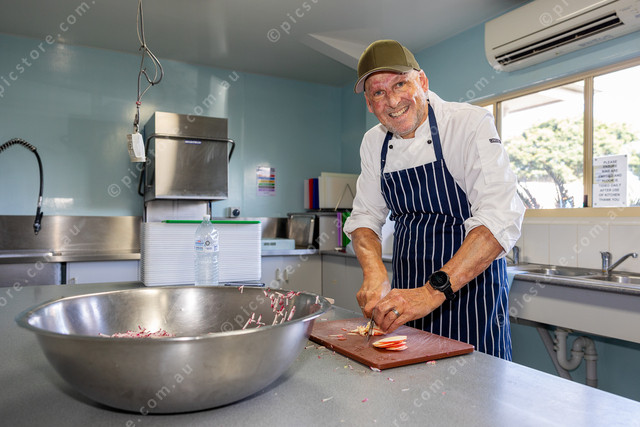 Celebrity Chef Matt Golinski cooking up a storm for Gympie Bowls Club’s 120th Birthday celebrations.