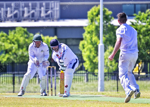 Ben Robertson plays a straight bat to this Mark Spiller delivery (Ivan Kemp) 512910_03