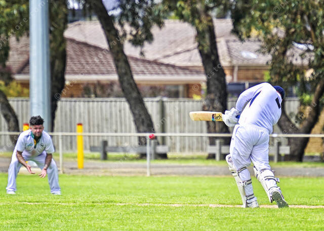 Nathan Frye drives and is caught by Mitchell Sleeman off the bowling of Dane Wise-Graham for 10 runs (Ivan Kemp) 518055_21