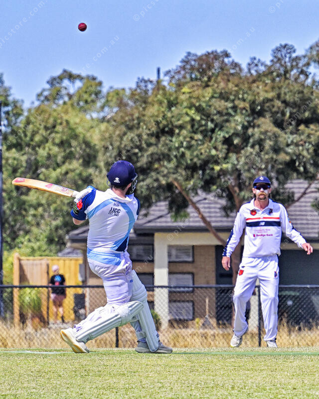 Finn Bilston lofts this delivery over square leg (Ivan Kemp) 536152_31