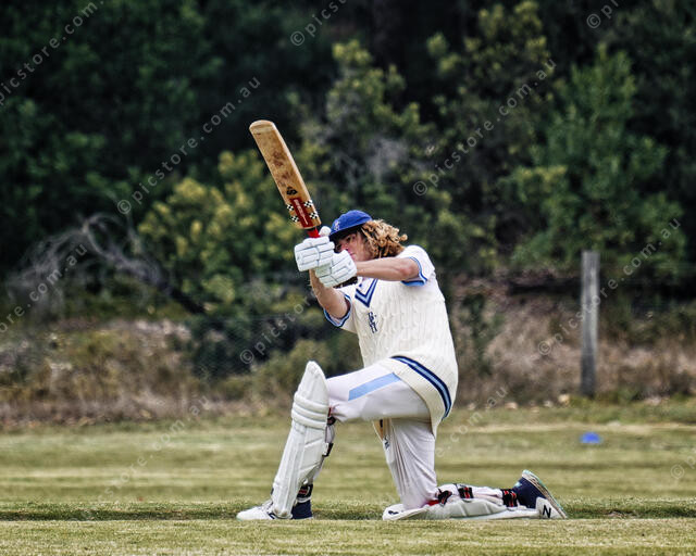 Jaxon Mallett lofts this Tom Beasley delivery to deep mid on and is caught for 38 runs (Ivan Kemp) 454877_09