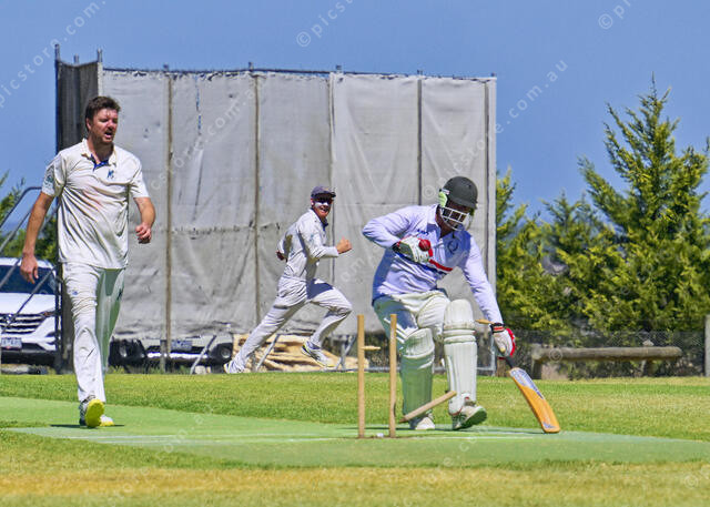 Toby Smith (60 runs) is run out by a direct hit from Lachlan Brown (Ivan Kemp) 463981_10
