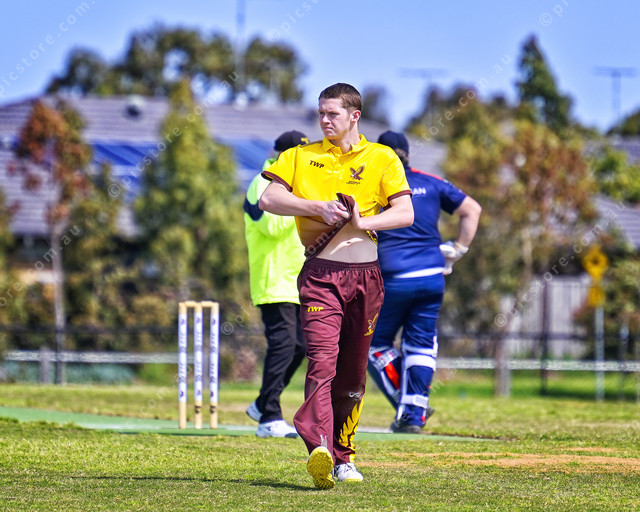 Hayden Eddy (2 for 45 off 7 overs) walks back to his bowling mark (Ivan Kemp) 507749_01