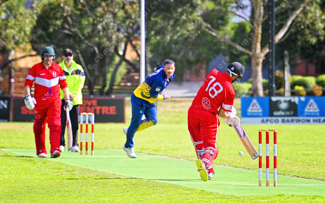 Baljinder Singh Brar lofts this delivery down the ground for 4 runs (Ivan Kemp) 508542_20