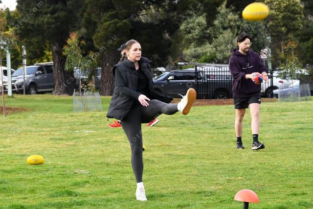 Staff Maddy Roberts kicking the footy with the kids 357615_10