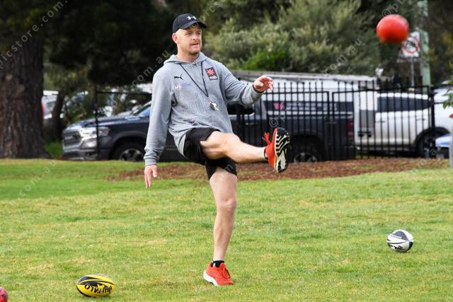 PE Teacher Leigh Stewart playing footy with the kids 357615_11