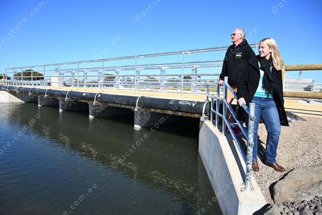 The newly upgraded Altona Ford Bridge is being re-opened. Pic of Hobsons Bay mayor Daria Kellander and Cr Michael Disbury next to the bridge. Photo by Damjan Janevski. 479842_03