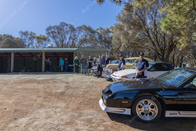 Pictured with cars of Port Lincoln Auto Club members were Ray Baddley, Des Boyce, Des Pinson, Vel Satalic, Bendigo Bank ??, Annette Luckraft Rick Miels, Peter Southam, Diana Mislov.