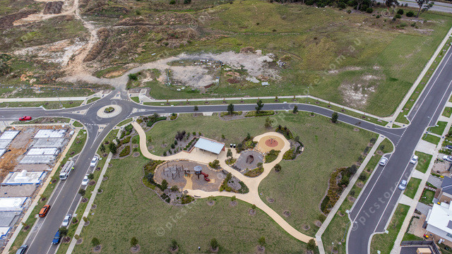 Aerial pic of Ambassador Circuit Reserve and the vacant land for proposed town centre, Cranbourne South.