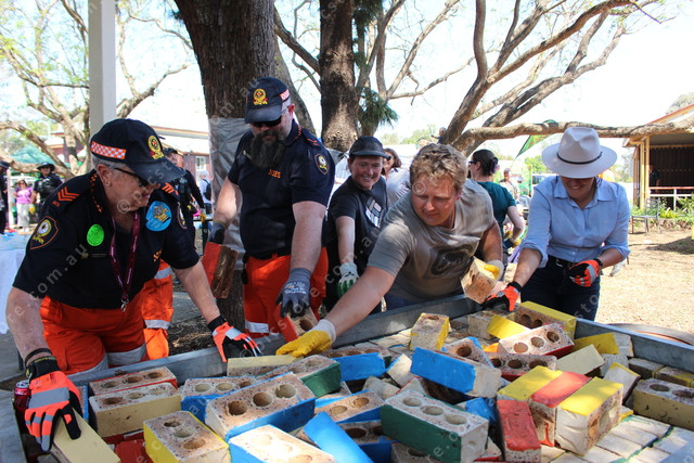 SES, Police, council, Scouts and community teams cleared out a trailer of bricks as part of the Black Snake Creek Festival challenge.
