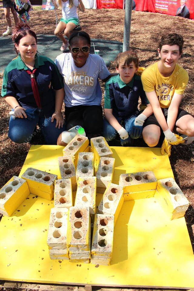 The Rosewood Scouts team built the Scouts symbol, the fleur-de-lis, winning them the challenge. Pictured: Lily, Magdalene, Parker and Max.