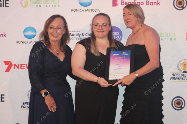 Kathy and Tomeeka Smith receive a certificate of appreciation from Bendigo Bank CEO Kate Wakeling. (Larraine Sathicq: 519455_04)