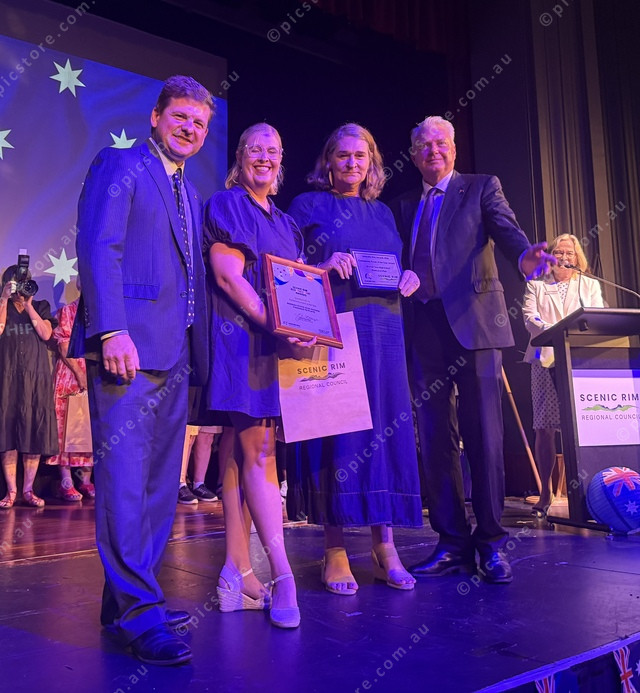 Federal MP Scott Buchholz congratulates award winners Kane Lutter and Jenny Jenner. (Larraine Sathicq: 530798_08)