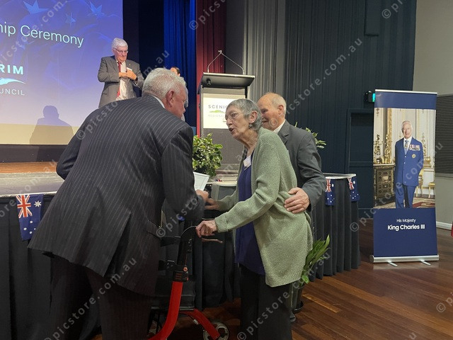 Mayor Tom Sharp presents Joan and Dean Price with their certificates of Australian citizenship. (Larraine Sathicq: 504958_02)