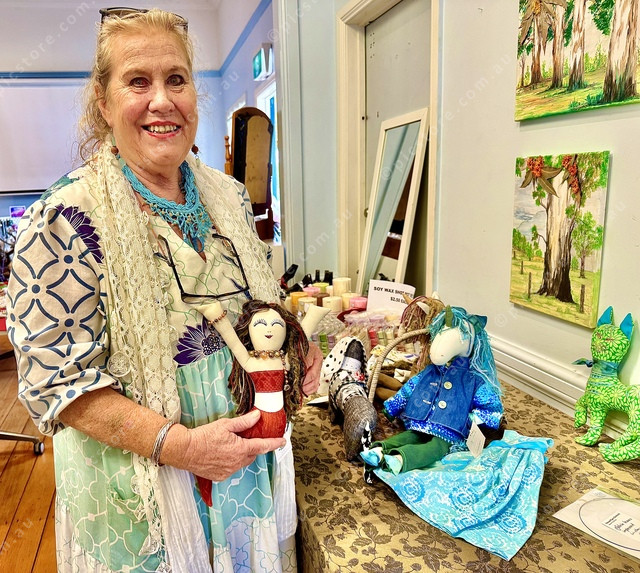Erica Bates displays some of her “Just Be It” work including unique hand-sewn dolls. (Larraine Sathicq: 447224_05)
