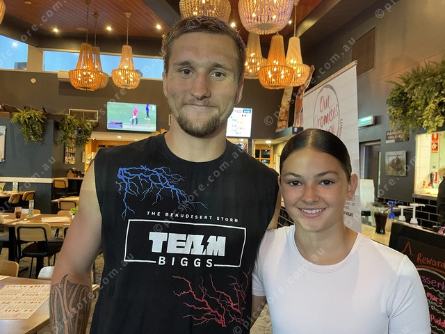 The Beaudesert Storm meets Hollie, 12, at the Railway Hotel in Beaudesert. (Larraine Sathicq: 517492_02)