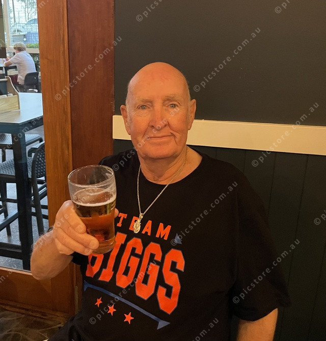 Biggs’ stalwart fan Barry Leo enjoys a brew at the Railway Hotel fundraiser. (Larraine Sathicq: 517492_04)