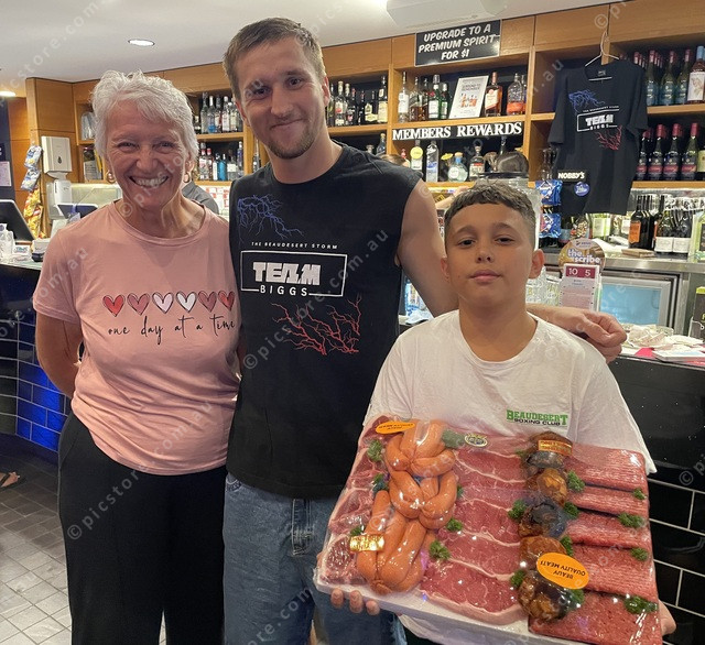 Julie Ferguson claiming her prize from the Beaudesert Storm and Tane G. (Larraine Sathicq: 517492_09)
