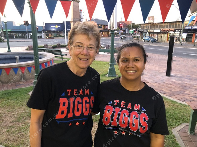 Ellen Logan and Sharlyn O’Leary decorated Central Place with red and blue bunting. (Picture supplied)