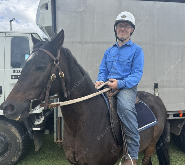 Patrick Perkins in his happy place at the Beaudesert Campdraft. (Larraine Sathicq: 471715_09)
