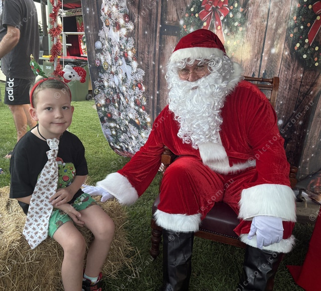 Grayson Allen, 5, visits Santa in Jubilee Park Beaudesert. (Larraine Sathicq: 522850_11)
