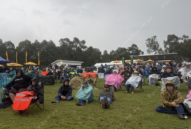 Rain did not stop country music fans from finding a good spot in the paddock to see their favourites perform. (Larraine Sathicq: 481559_07)